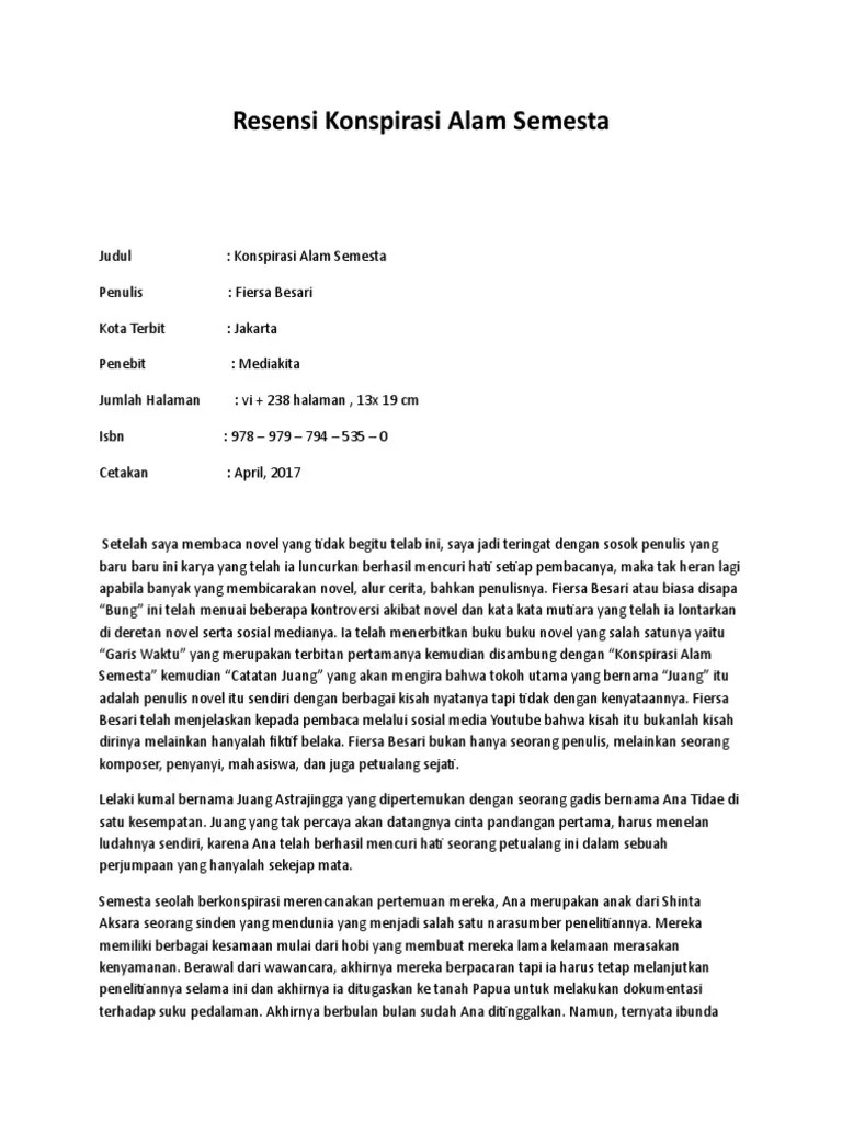 Konspirasi alam semesta adalah karya fiersa setelah catatan juang. Mohon baca diskripsi terlebih dahulu sebelum belanja. Oleh karena itu, penelitian ini akan mengkaji tema dan fakta cerita yang terdapat dalam novel. Astarajingga dan ana tidae di dalam novel konspirasi alam semesta ini. 2017 sinopsis seperti apakah warna cinta?