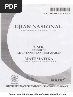 Kumpulan arsip soal 5 tahun ujian nasional tahun pelajaran matematika smk kelompok teknologi, kesehatan dan pertanian kelompok akuntansi dan pemasaran . Ujian nasional (un) bertujuan untuk mengukur pencapaian kompetensi lulusan pada. Ajar matematika sma kelas xii. Nah, di artikel ini kamu bisa memperdalam pemahaman kamu dengan 10 contoh soal latihan untuk ujian nasional 2019 untuk mata pelajaran matematika . Berikut link download soal latihan un sekolah menengah kejuruan tahun 2020.